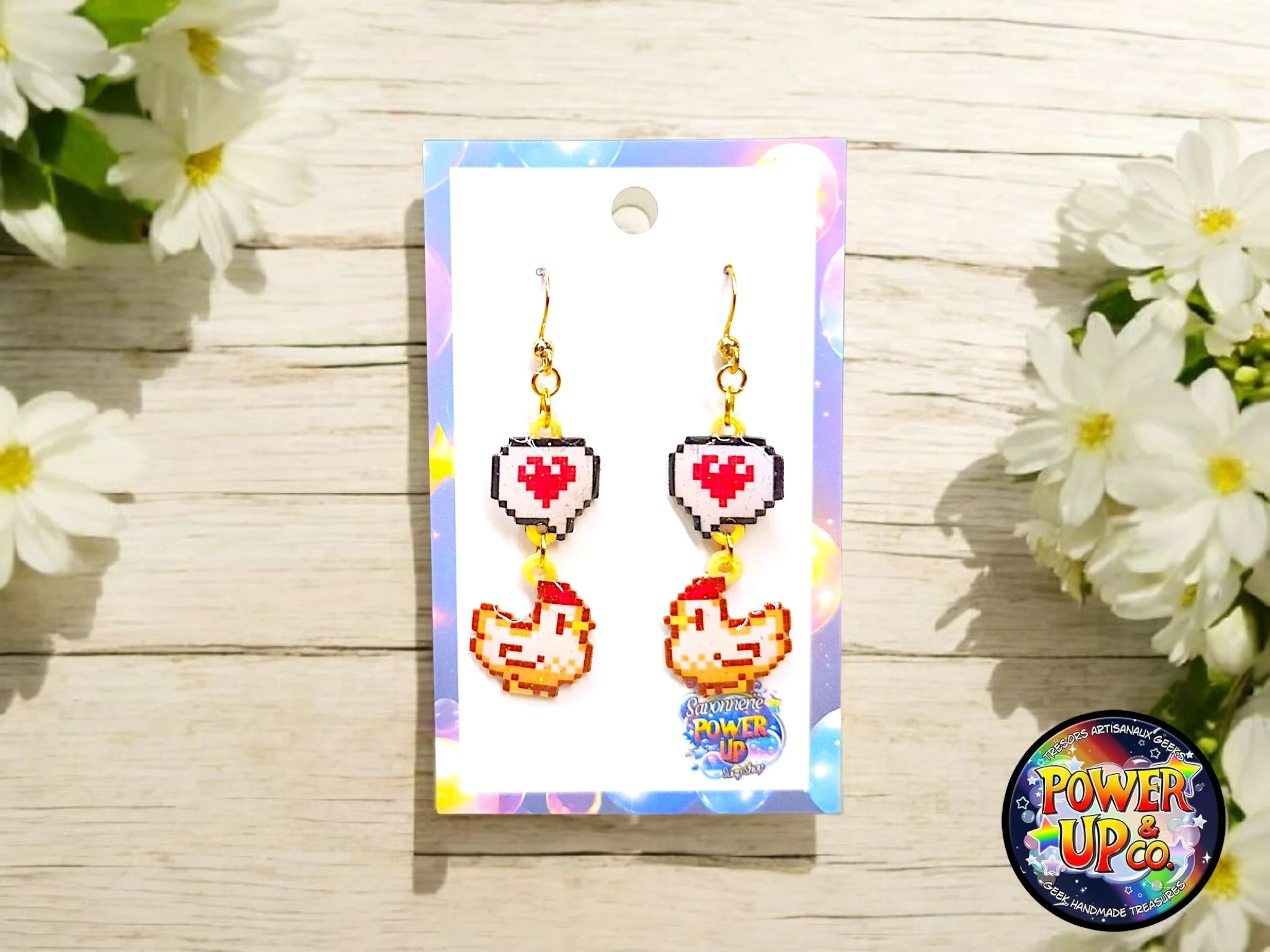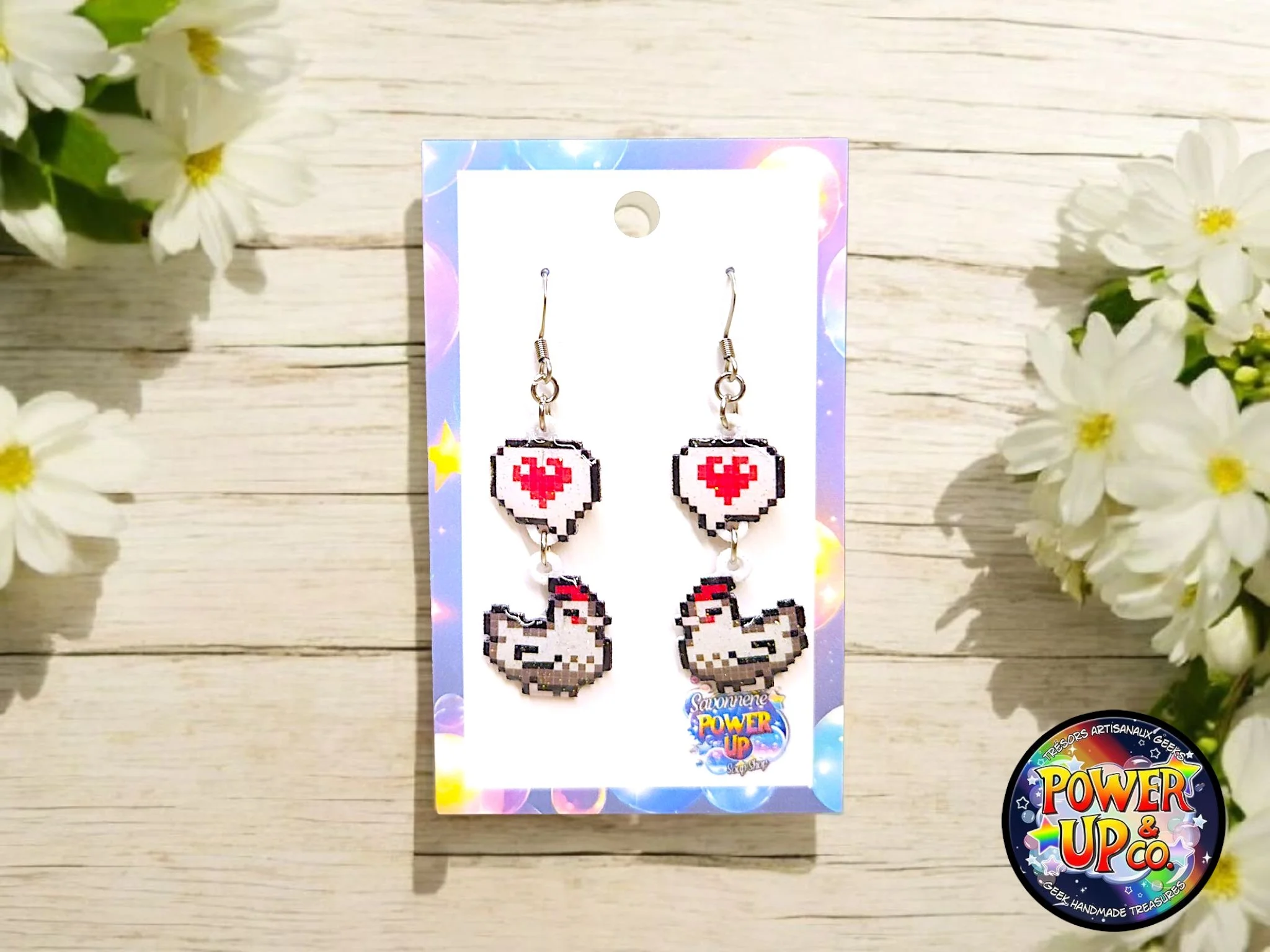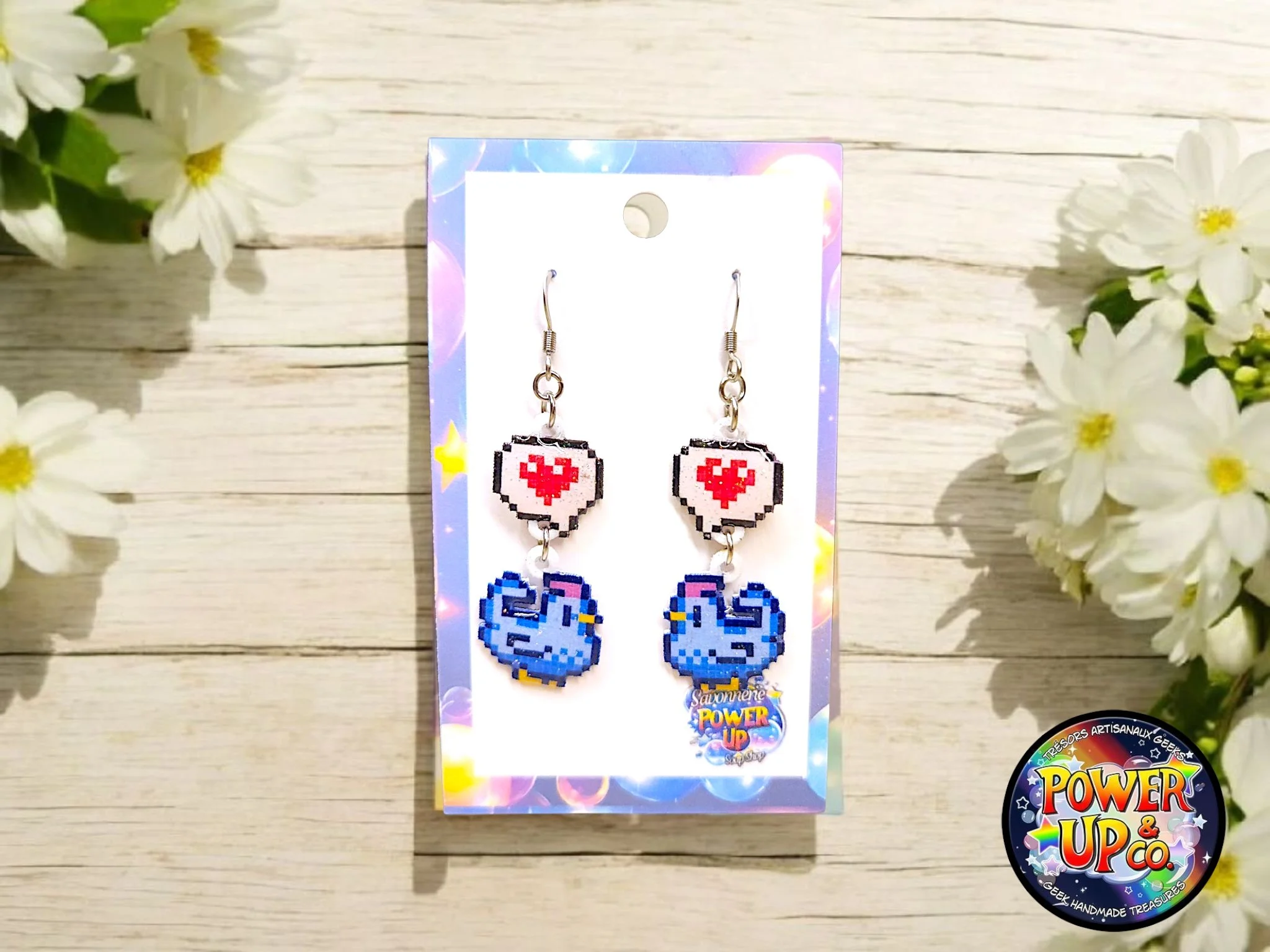 Boucles d'oreille entièrement faites à la main. Dessin par Sunny Milk. Acier inoxydable.